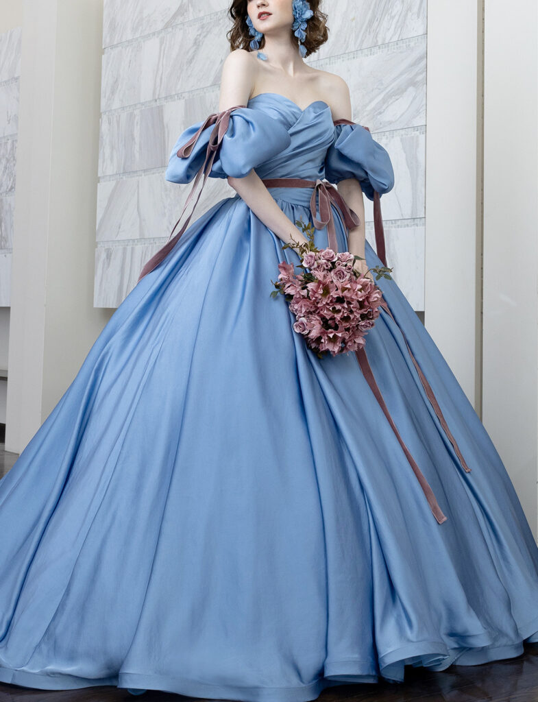 リボンパフスリーブが印象的なブリリアンターユドレス