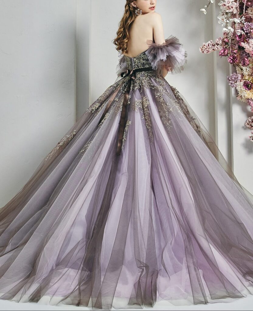 特別な日を迎える花嫁様にとって、カラードレスは自分を表現する重要なお色直しアイテムです。Lulu feliceのグレイッシュパープル【LU-0154】は、そのニュアンスカラーとトレンドを取り入れたデザインで、多くの花嫁様に支持されているカラードレスレンタルです。5号から21号までの幅広いサイズ展開も嬉しいポイントです。