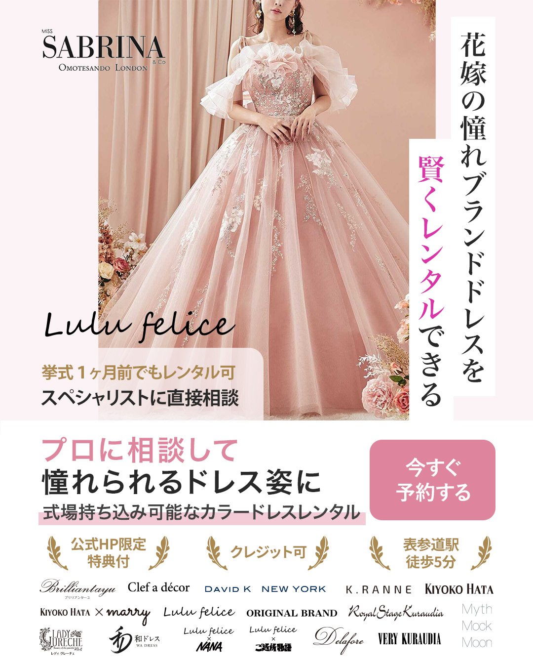 ミスサブリナ表参道公式サイトの専用フォームからのご来店で、ドレス小物のレンタルが無料になる公式サイト限定特典をご用意致しました。